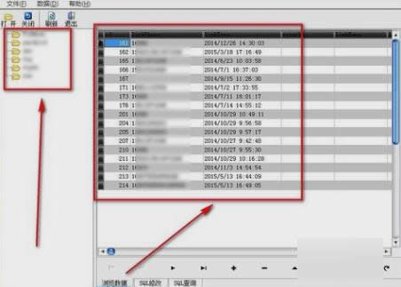 最后在软件窗口的左侧可以看到数据库文件中包括的数据表的名称列表,点击想要看的数据表,然后在右侧就可以看到表中的数据。