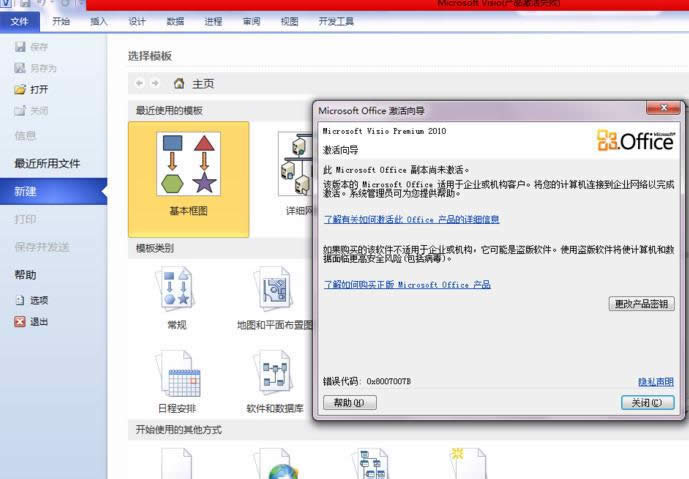 点击电脑上的visio图标,打开该软件的同时弹出了microsoft office激活向导。