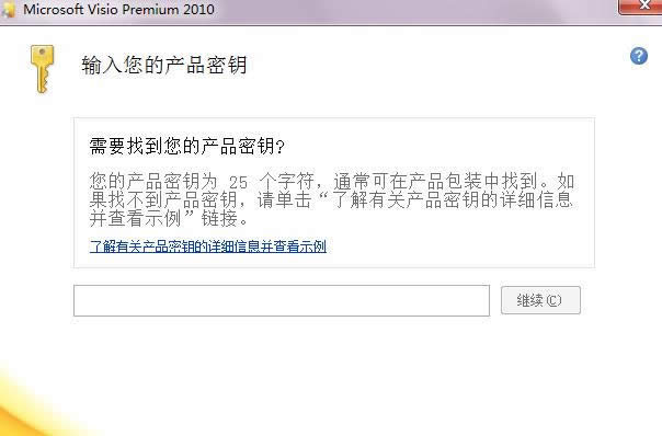 输入到visio 2010产品密匙窗口验证。如果密匙不正确,窗口会弹出提示,如果正确,就会点亮右侧的【确定】按钮。