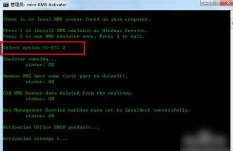 按照提示第一个需要安装什么KMService,这里不安装,输入数字2,然后点第二个步骤。
