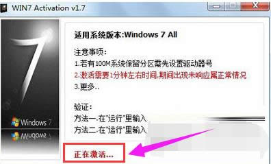 运行WIN7Activation后,点击软件主界面上的“激活”,进入激活状态