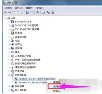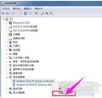 点击设备管理器菜单的操作--扫描硬件改动,系统一般会用通用驱动重新驱动网卡,安装完成后,重新启动计算机!应该可以了!