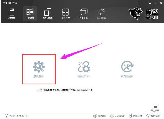 在黑鲨官网下载黑鲨装机大师软件,下载后打开。