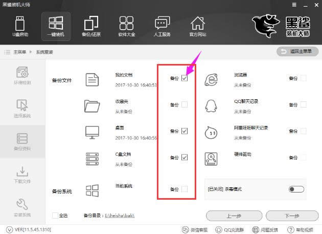 只需勾选想要备份的文件,黑鲨就会在下载系统的同时进行备份。