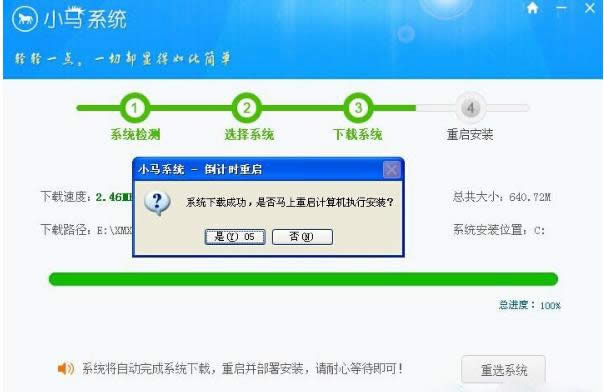 下载系统:用户选择好系统后,进行系统下载,系统下载是全自动进行的,整个过程只需几秒时间耗时短,安全稳定。