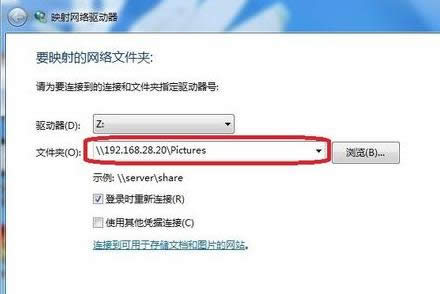 使用其它凭据连接:有些服务器共享,处于安全的考虑,需要你输入访问密码。这个选项默认是没有打勾的,如果共享服务器需要输入访问密码,会自动弹出窗口需要输入访问用户名和密码。