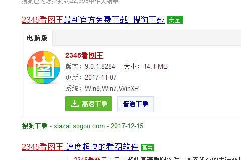 首先在百度上搜索“2345看图王”,点击搜索后,我们看到第一条搜索结果就是,点击下方的“立即下载”。