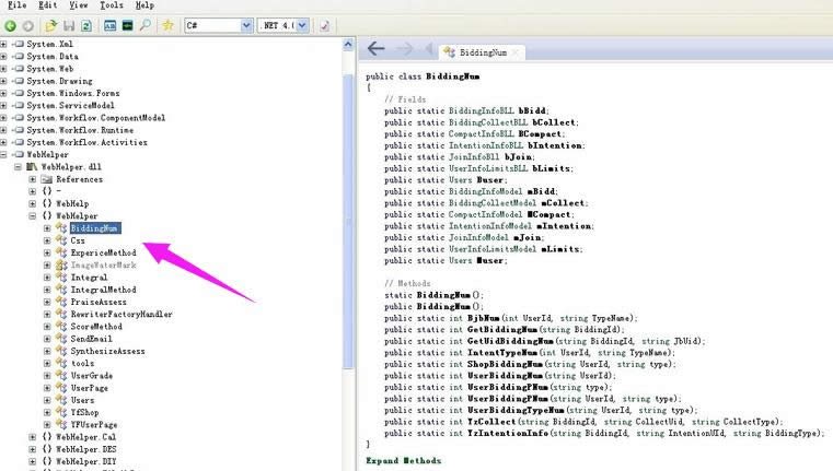 在所选择的.dll文件下面可以看到dll中所有的编写的类,