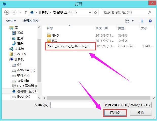弹出一个查找范围窗口,只需打开启动u盘,选中win7 iso系统镜像文件,点击“打开”按钮