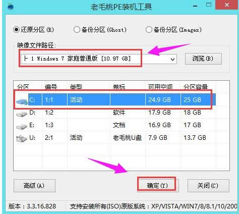 根据需要在映像文件路径下拉框中选择win7系统其中一个版本,