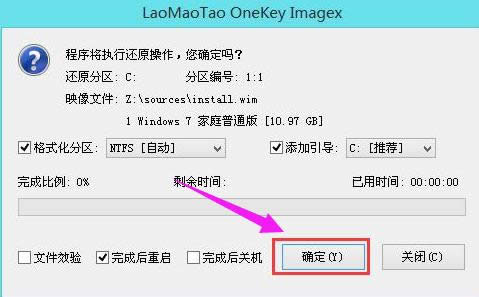 弹出一个提示框,询问是否需执行还原操作,建议默认设置,点击“确定”