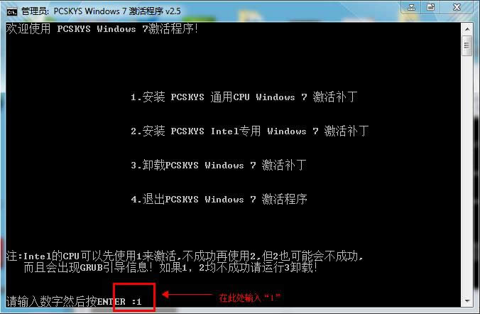 3、如下图提示,按任意键继续,重启后win7系统就激活了。