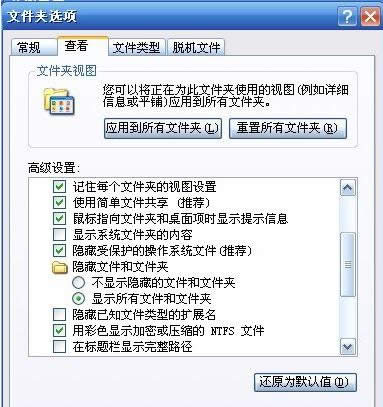 选中“显示所有文件和文件夹”和不选中“隐藏已知文件类型的扩展名”,就可以看到所有文件和文件夹和所有文件的扩展名(此步骤必须要做,因为默认的自动保存路径,在WINDOWS系统里是隐藏的)。