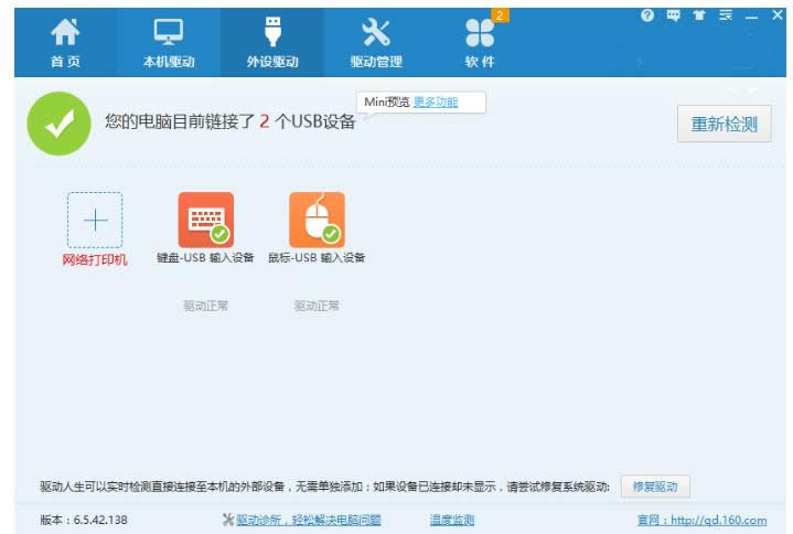 (2)用户运行桌面快捷方式,或者点击到win7万能网卡驱动程序界面的广告图,则会运行驱动人生6主程序