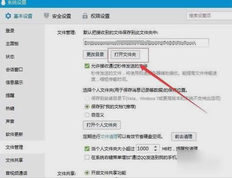 如果不是想进入现在登陆的QQ号码的文件夹的话,在点击“打开文件夹”后,先进入上一层目录,然后找到想进入的QQ号码文件夹就可以了