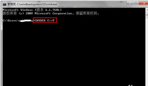 第二步:打开命令提示符,输入CHKDSK C:/F这类参数。其中C:中的C是你需要检测的分区盘符,如果只输入CHKDSK则会显示当前系统盘的状况。