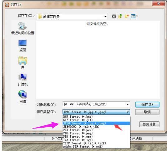 在保存图片时选择JPG格式,点击确认,图片呗保存为JPG格式。
