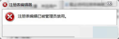 6、我们运行一下注册表试试,系统就会弹出:注册表编辑已被管理员禁用;