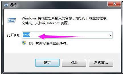 点击运行对话框,然后在运行窗口上输入CMD命令,打开命令提示符窗口。