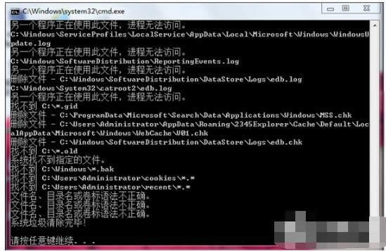 echo 正在清除系统垃圾文件,请稍等。。。。。。