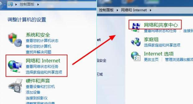 1、打开“网络和共享中心”,在“网络和共享中心”窗口中左击“更改适配器设置”进入“网络连接”管理。