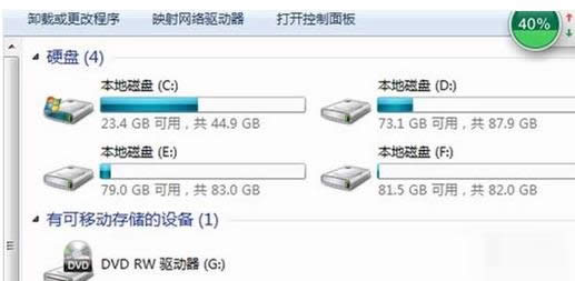 再次打开“计算机”,也可以看到移动硬盘的盘符“F”了。
