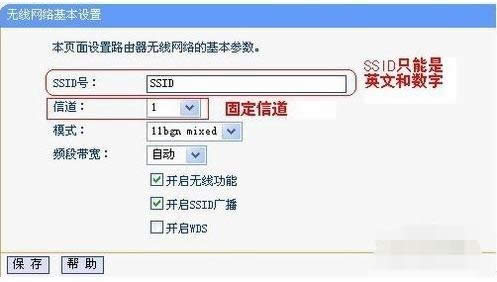 2,在无线设置-基本设置中设置“SSID号”、“信道”,设置固定信道号,如图: