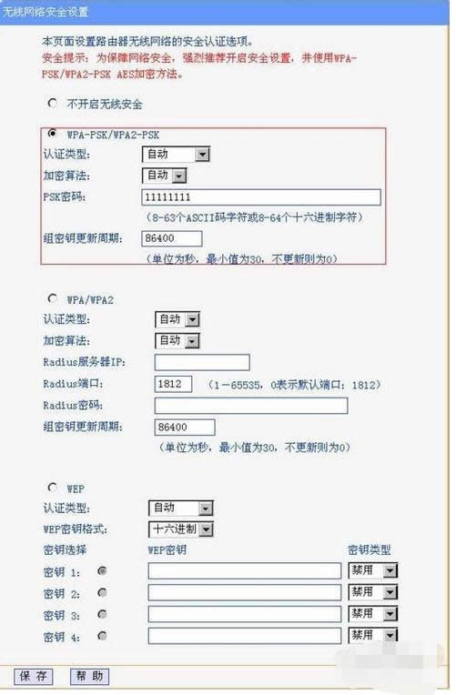 5,将信道设置成与第一台路由器信道相同。同时设置加密信息和第一台路由器相同,点击“保存”。如下图: