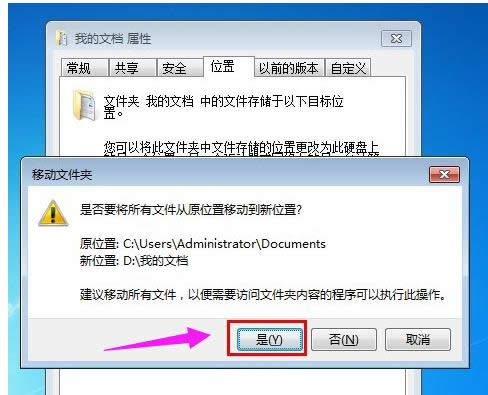 在弹出的窗口中选择“是”,开始移动所有文件到D盘。