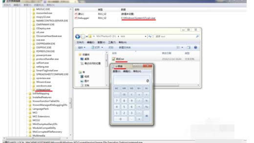 8其实ntsd -d可以换成任何其他字符。你甚至可以讲起设置为另一个程序的路径。我们以系统自带的计算器为例。将ntsd -d 改成C:\Windows\System32\calc.exe,再看看效果。
