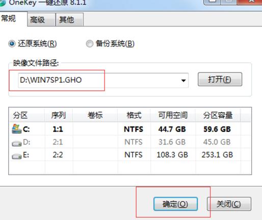 2、选择列表中的系统盘(默认C盘),选择“WIN7SP1.GHO”映像文件,点击执行。会提示是否重启,点击是,系统将自动安装。