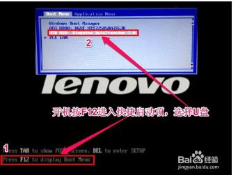 4,先把大白菜启动U盘插在电脑上,然后开机,进入Logon画面时,按F12键,便会弹出快捷菜单项,选择其中的U盘“USB-HDD: Kingston DataTraceler 3.0”这一项,然后按Enter确定,即可进入大白菜启动U盘。