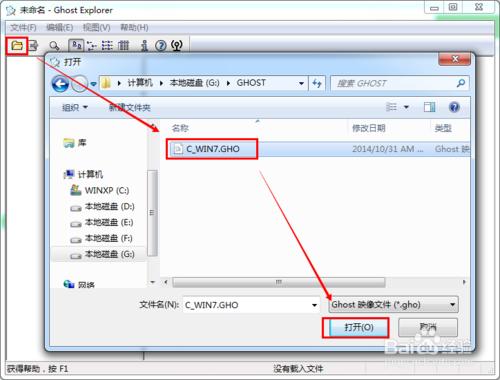 运行系统镜像查看器ghost ghost Explorer,查看系统文件,点击打开图片,选择系统备份文件,然后点击打开,如下图所示。