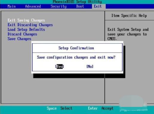 设置好后,直接按下F10,或者选到【Exit】,选择“Exit Saving Changes”项,按回车,保存并重启,