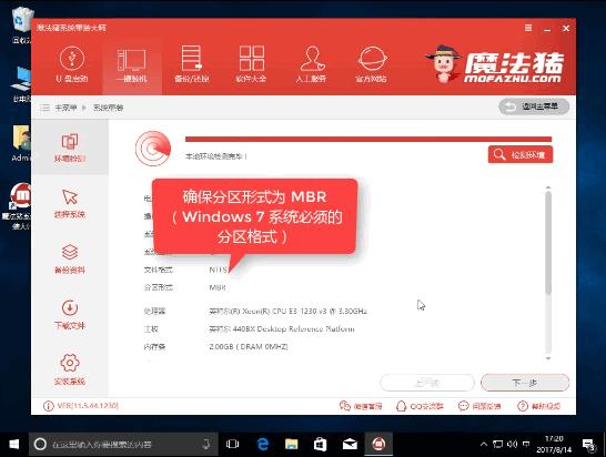 软件对系统进行装机检测,如果在此步卡住不动,建议重启电脑或软件,