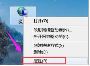 右键“网络”,点击“属性”。