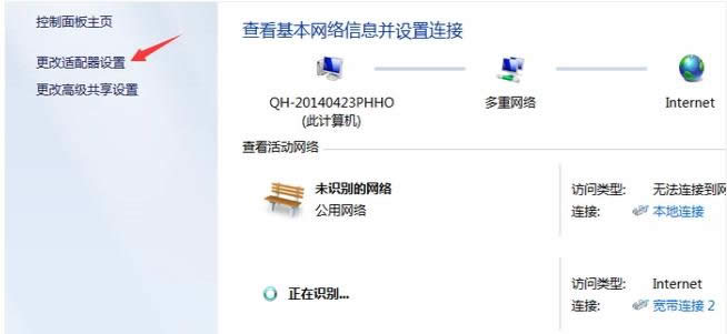 接着点击“更改适配器设置”。