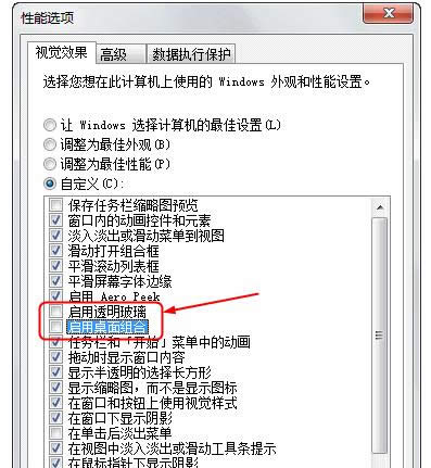 进入“设置”,找到“视觉效果”的“玻璃效果”和“启用桌面组合”取消这两个显示效果: