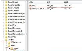 然后按照路径:HKEY_CLASSES_ROOTexefileshellopencommand,确保默认值为:"%1" %*