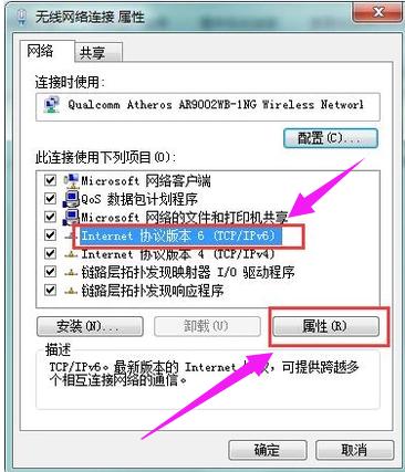 在适配器中,找到无线网络连接,点击右键,在弹出的菜单中,点击最下面的属性。