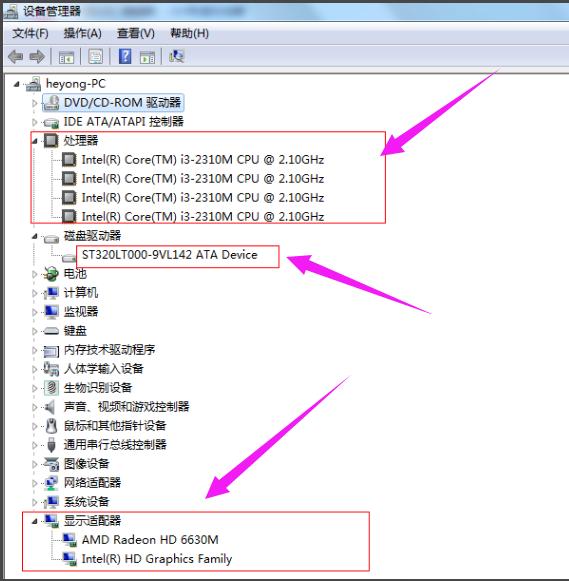 点击右侧栏目“设备管理器”就会弹出笔记本电脑所有的硬件配置信息。