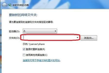选择需要映射的共享文件夹。我们可以直接在下图红色标注框中直接输入共享文件夹的地址,也可以点击右边的”浏览“查看局域网中其它计算机的共享文件夹