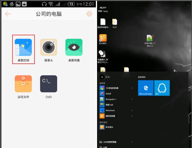 从手机端进入win7电脑之后,便可任意操作电脑桌面上的应用,比如阅览网页、下载或上传文件、编辑文本等等。