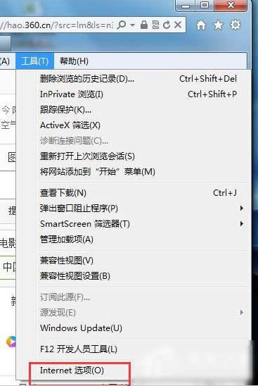 首先打开浏览器,点击“工具”(或浏览器右侧齿轮图标),然后点“Internet选项”。(这里指的是IE浏览器,其他浏览器一般不需要设置)。