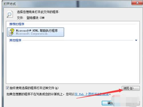 点击之后会弹出一个窗口,让你选择一个打开文件的程序,来打开程序,对于次文件我们点击浏览