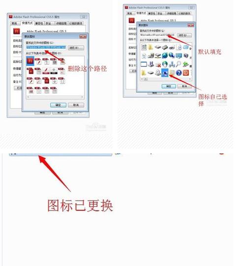 3.弹出更改图标的对话框中,只显示与此程序有关的图标,将上面浏览前面的地址删除,然后再按回车键,出现电脑里的全部小图标,同时路径系统会自动补上这个不用管,在下面的图标中选择一个自己喜欢的图标作为显示桌面的图标,点下确定,应用。此时快捷方式的图标已经更换