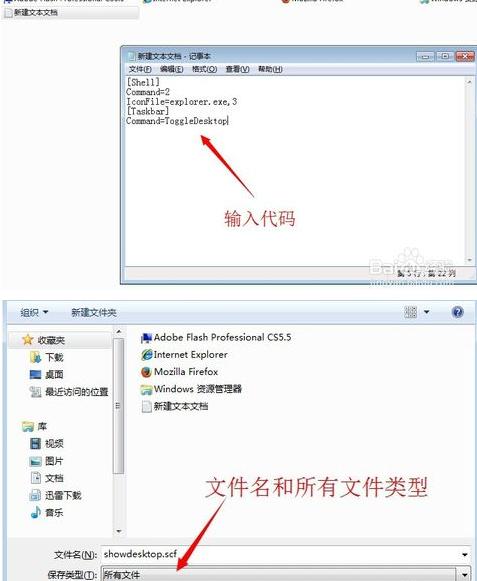 然后点文件另存为showdesktop.scf,保存类型一定选择所有文件类型,还是存储到这个文件夹把,完了我们复制