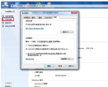 2.在打开的系统窗口右侧点击“远程设置”按钮,勾选“允许远程协助连接这台计算机”,接着在下面选择“运行运行任意版本远程桌面的计算机连接”,点击确定进入下一步。