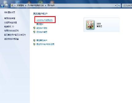 4.进入”用户账户“选项后,点击”为您的账户创建密码“选项,进入下一步。