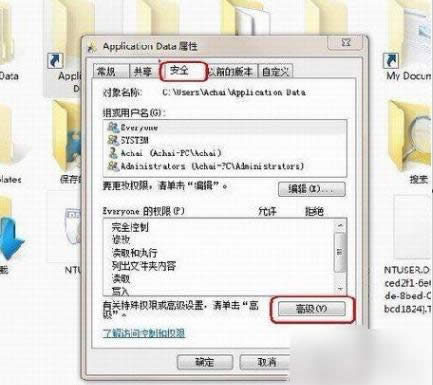 1.找到拒绝访问的文件夹,然后鼠标右键点开,再点属性,再切换到“安全”那一栏,然后在底部看到有“高级”。